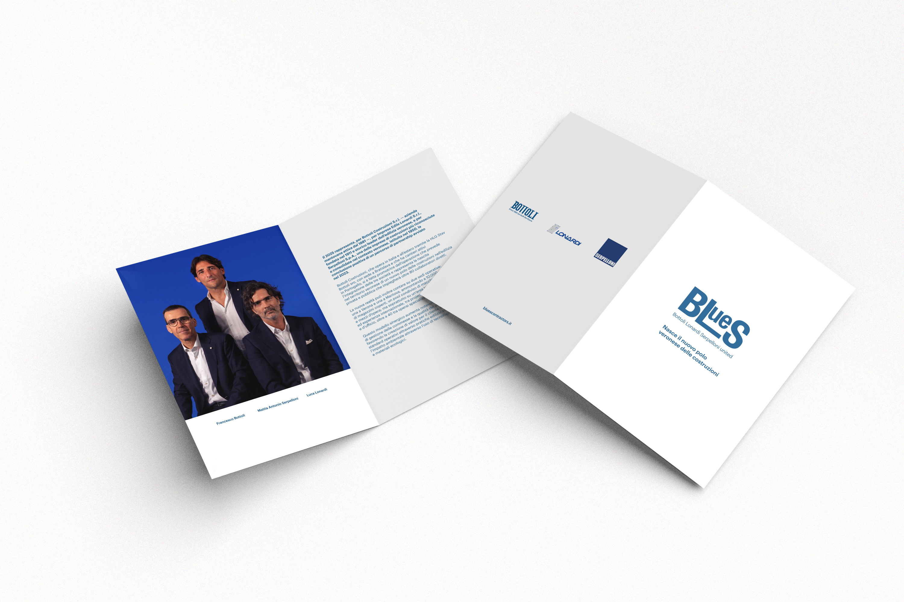 nel 2025, per costituire un grande polo delle costruzioni basato nelle province di Mantova e Verona e attivo nel nord Italia, necessitava di un contenitore e di una narrazione originale. Gli incontri con i tre giovani amministratori, Francesco Bottoli, Luca Lonardi e Mattia Antonio Serpelloni ci hanno rassicurato sulla possibilità di proporre idee per il naming e l’identità visiva non convenzionali, quali acronimi o nomi neutri come accade di consueto nel comparto dove operano.