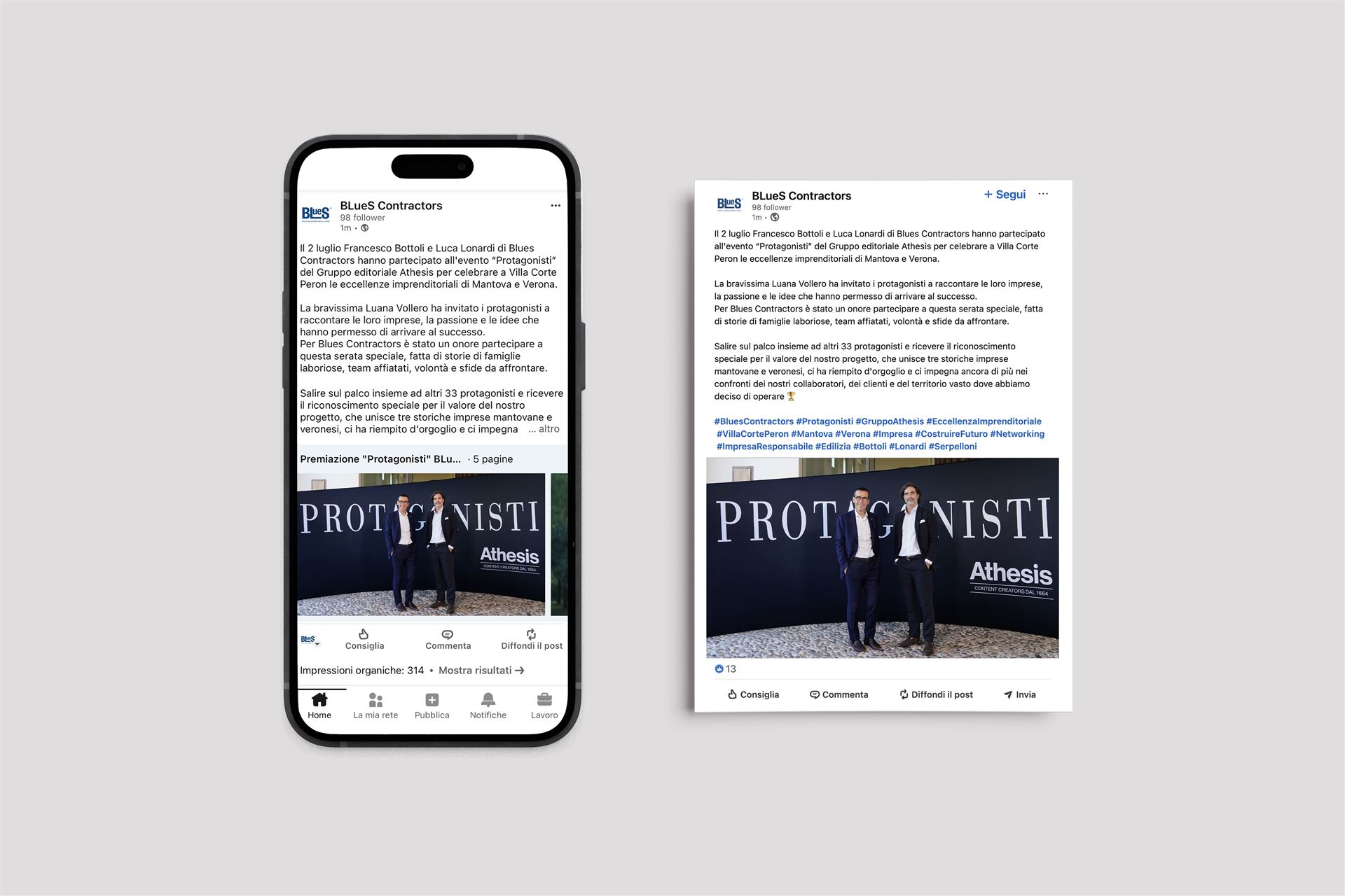 tramite contenuti LinkedIn studiati ad hoc: post curati, visual coordinati e storytelling che presentano l’identità del brand, con la presentazione dei tre amministratori delegati, la loro vision e mission, e le voci e i volti di alcuni dipendenti, estratti dalle videointerviste della rubrica “Protagonisti” del Gruppo Editoriale Athesis. In questo modo, il nuovo brand si è affermato in modo professionale e riconoscibile sui canali digitali.