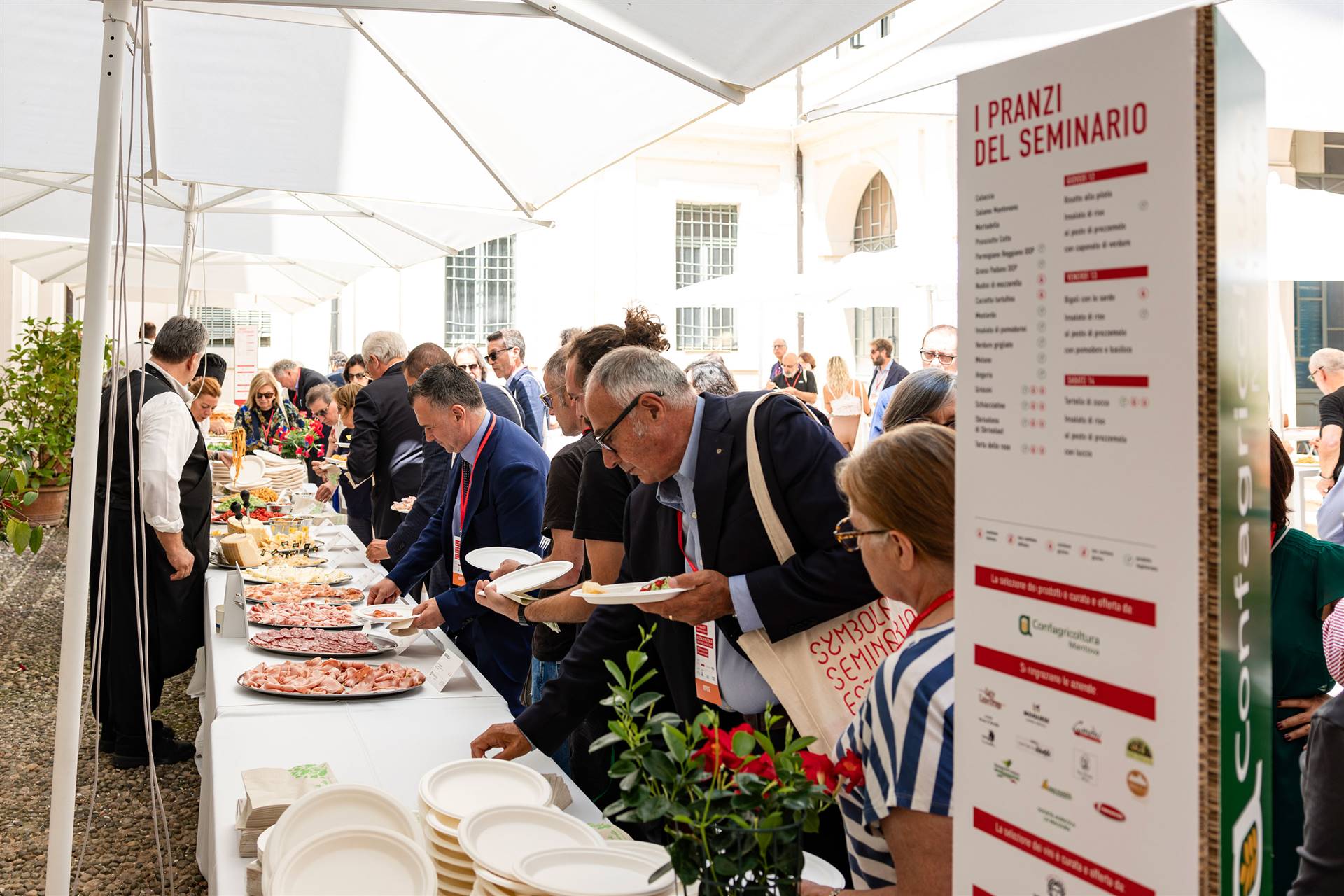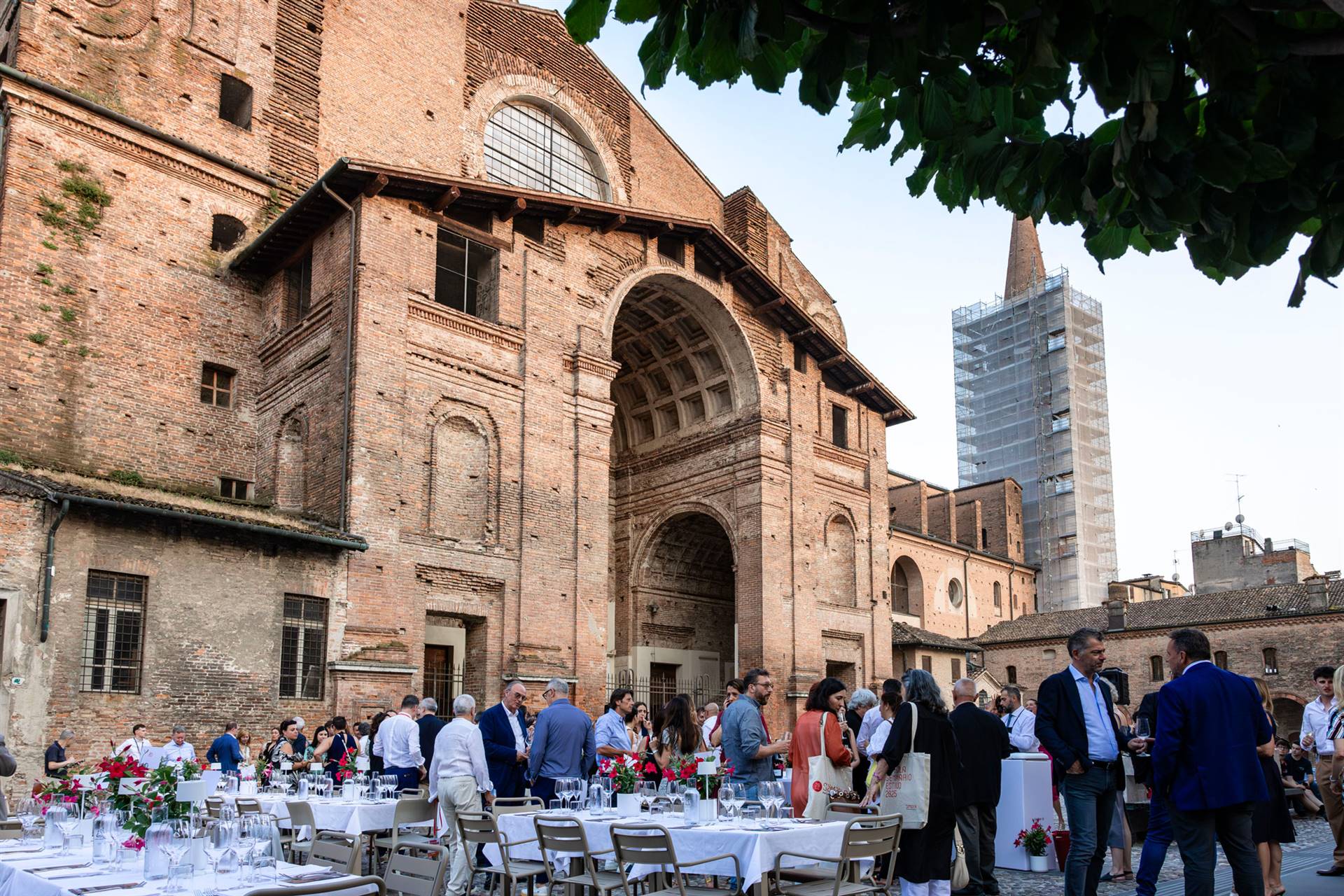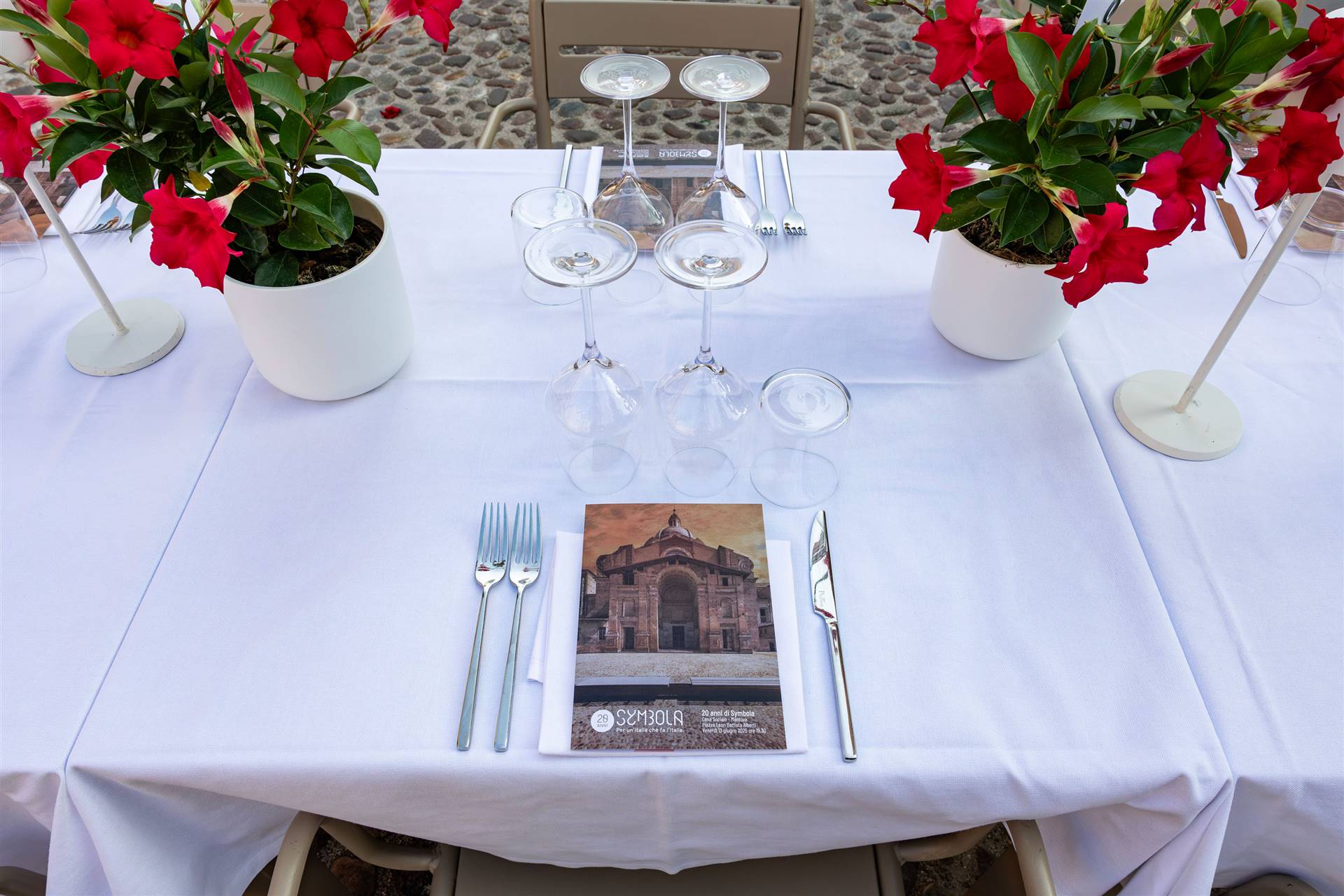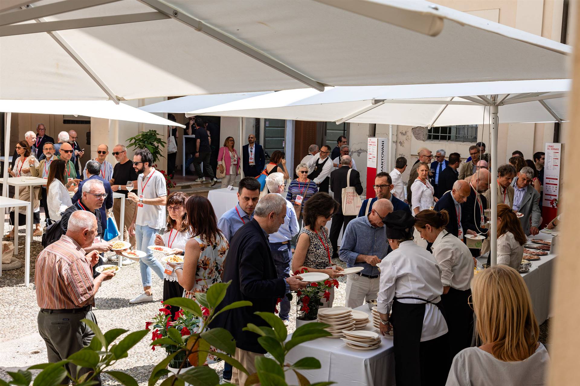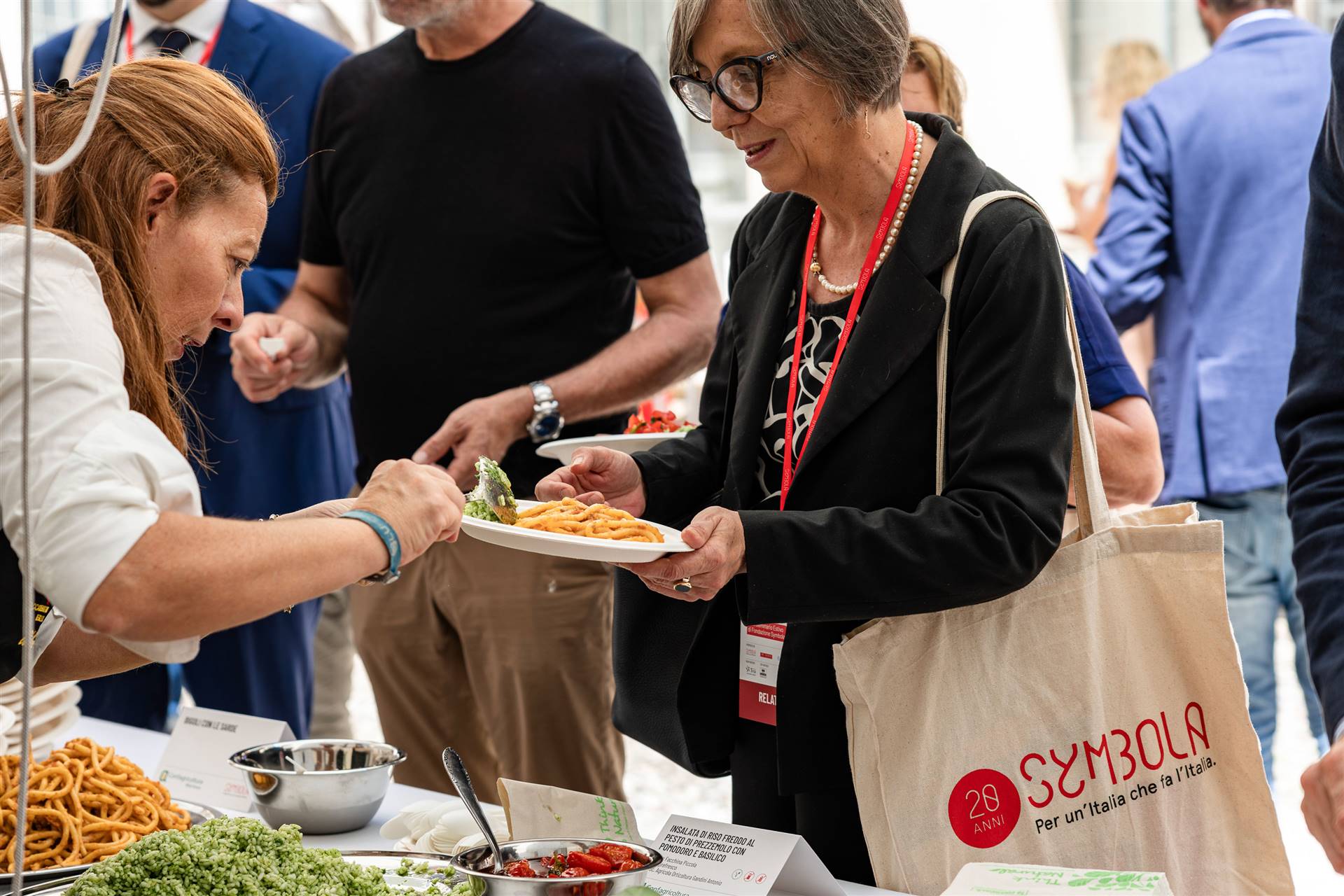 Pranzi a buffet al Teatro Scientifico Bibiena Il Seminario Estivo ha impiegato per tre giorni, dalla mattina alla sera, il Teatro Scientifico del Bibiena con i numerosi panel di ospiti invitati ad approfondire i temi su cui Fondazione Symbola è impegnata. Per rendere unica e confortevole l’esperienza, Fachiro ha organizzato e allestito, in partnership con Antoniazzi, sponsor tecnico dell’evento, un open bar che ha potuto supportare relatori e ospiti per tutto lo svolgimento dei lavori, con il meglio della caffetteria e della ben nota pasticceria alla mattina e succhi freschi e creazioni di frutta il pomeriggio. Ognuno dei tre giorni del Seminario Estivo ha visto il cortile del Palazzo dell'Accademia Nazionale Virgiliana allestito per ospitare il pranzo a buffet, pensato e coordinato insieme a Confagricoltura Mantova, che ha coinvolto una selezione di aziende mantovane per una proposta originale che ha riunito una vastissima selezione di salumi, formaggi, verdure e frutta, per il piacere dei numerosissimi ospiti che hanno potuto gustarne la grande qualità. Il pane ed i prodotti da forno sono stati forniti da Sapori di Libertà, il laboratorio artigianale attivo all’interno della Casa Circondariale di Mantova. I vini dei tre giorni di pranzi sono stati selezionati e offerti dal Consorzio Vini Mantovani, sponsor tecnico dell’evento e hanno coinvolto oltre venti aziende del territorio mantovano. La somministrazione del cibo, la preparazione dei piatti caldi e dei vini, oltre al coordinamento della sala per i pranzi e di Piazza Leon Battista Alberti, per la cena sociale del ventesimo anniversario di Fondazione Symbola, sono stati svolti, per il terzo anno consecutivo, dagli amici dell’associazione Accademia Gonzaghesca degli Scalchi. Il formaggio Grana Padano è stato offerto dal Consorzio Tutela Grana Padano, tra i principali sostenitori dell’evento. L’allestimento floreale del Seminario Estivo all’interno del Teatro Bibiena, del cortile del Palazzo dell'Accademia Nazionale Virgiliana dove sono stati allestiti i pranzi, oltre che di Piazza Leon Battista Alberti e dei tavoli dei tre ristoranti che hanno accolto gli associati Symbola, gli ospiti e le autorità per la cena sociale, sono di Bustaffa, sponsor tecnico dell’evento.