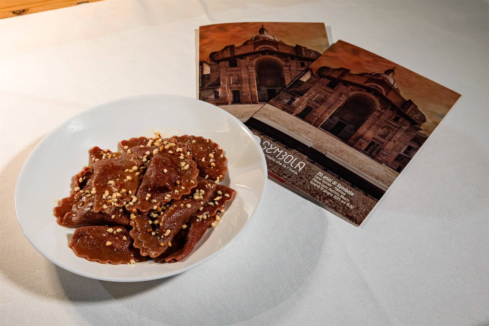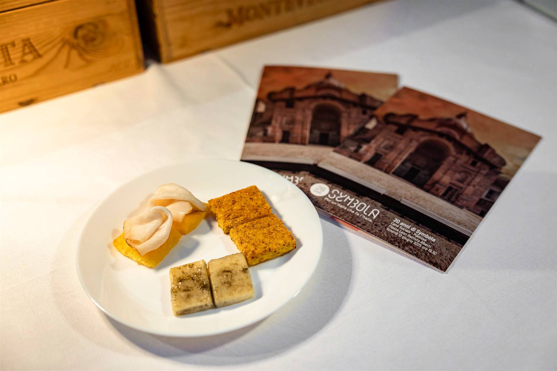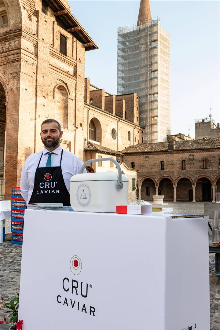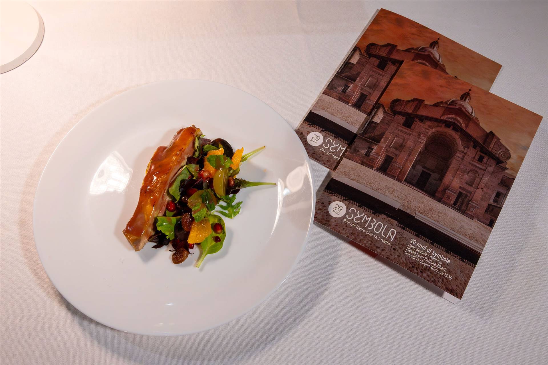 Cena Sociale in Piazza Leon Battista Alberti Il menù della cena sociale del ventesimo anniversario di Fondazione Symbola è stato ideato da Amedeo Palazzi di Fachiro, insieme a Elio Marini dell’Accademia Gonzaghesca degli Scalchi, con il supporto di Giacomo Valenti di Cru Caviar, prima azienda produttrice di caviale Beluga in Italia. La preparazione dei piatti, dagli ingredienti alla scelta delle tecniche di cottura, è stata coordinata da Fachiro, insieme a Elio Marini dell’Accademia Gonzaghesca e a Luca Zamboni, patron e a Francesco Zamboni, chef del ristorante il Laboratorio.