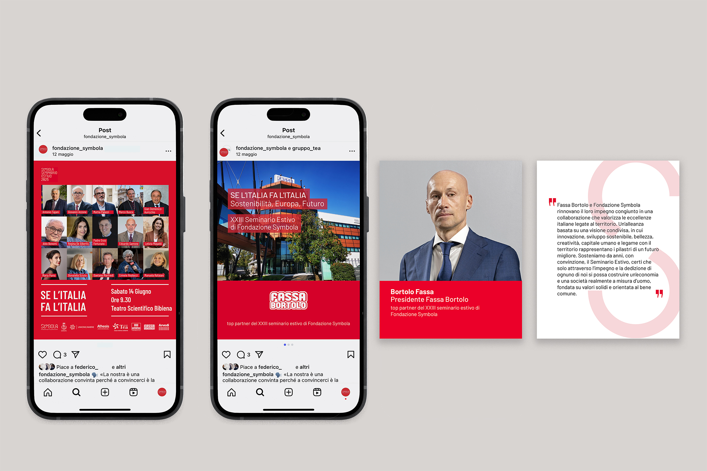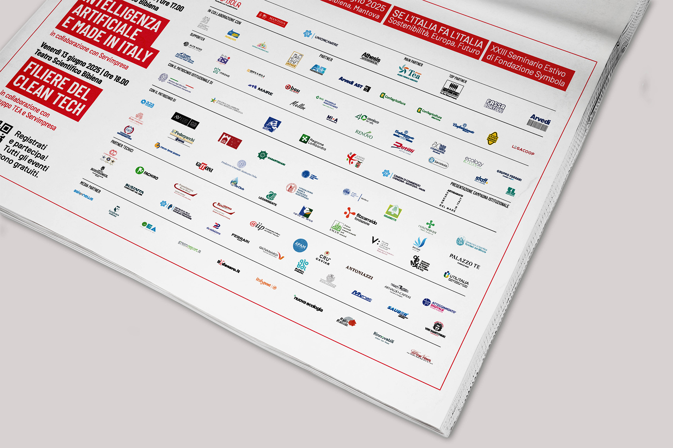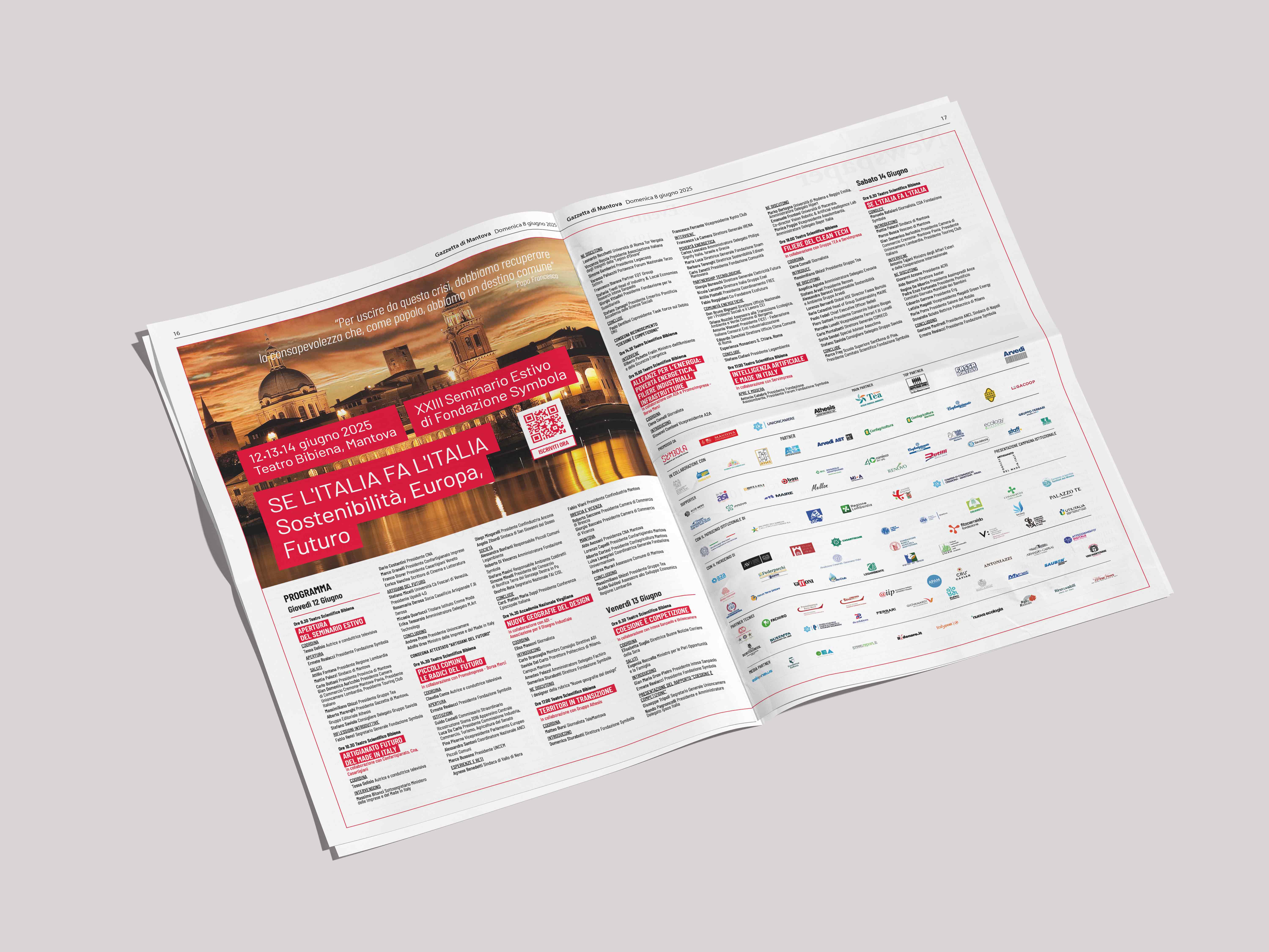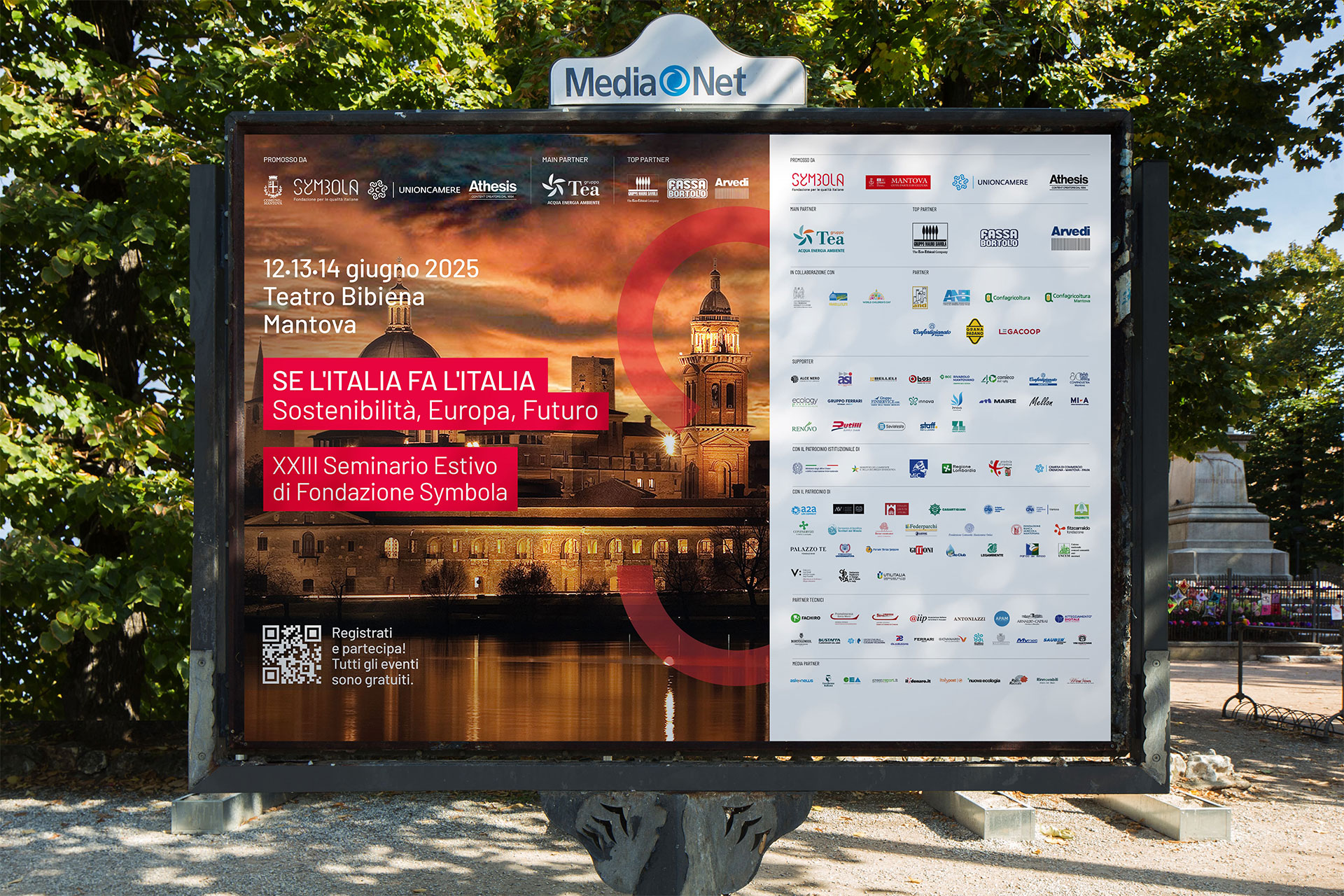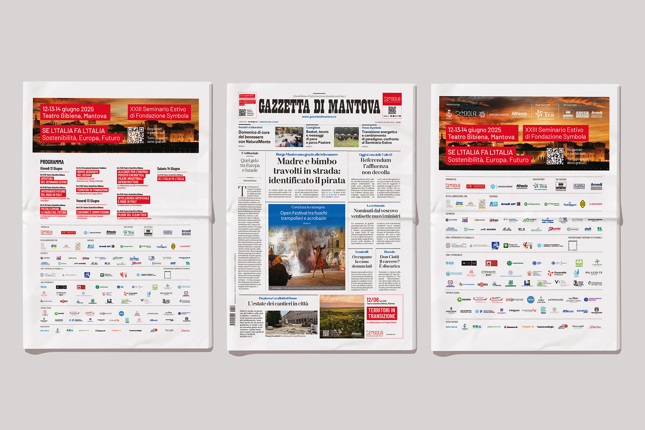 Per il terzo anno consecutivo dal 2023, Fachiro ha accompagnato Fondazione Symbola nell’ideazione, nell’organizzazione e nella promozione dell’importante evento nazionale che ha visto le parti sociali della provincia mantovana impegnate e coinvolte: dal Gruppo editoriale Athesis al Comune di Mantova, alle principali associazioni di categoria: Confagricoltura, Confindustria, Confartigianato, da realtà industriali quali Tea, Saviola, Fassa Bortolo, Arvedi e Belleli a colossi della consulenza quali Gruppo Finservice e Staff, a consorzi come Grana Padano e decine di realtà piccole e grandi del Paese, con i patrocini di tre ministeri e di Regione Lombardia. Fachiro, insieme a Symbola, sono impegnati tutto l’anno nell’analisi delle tematiche e nella ricerca dei più interessanti protagonisti nazionali e del territorio vasto che sta tra Lombardia, Emilia e Veneto, per costruire il programma, le alleanze strategiche, il progetto di sponsoring, l’immagine e la strategia di comunicazione. Fachiro ha organizzato e coordinato tutti i momenti della parte convegnistica all’interno del teatro Bibiena, dal service audio-video DeSimoni, al coordinamento delle hostess, del facchinaggio e della sicurezza di Verona83, la sala stampa e la sala Ovale all’interno dei locali dell’Accademia Nazionale Virgiliana, l’allestimento del open bar affidato ad Antoniazzi nei locali adiacenti alla Sala Piermarini, allestita da Evoluzione.biz come lounge per l’occasione, sino all’allestimento dei pranzi, promossi da Confagricoltura e gestiti insieme all’associazione Accademia Mantovana degli Scalchi e al Consorzio Vini Mantovani, nel cortile interno del teatro, che per tre giorni hanno ospitato e coccolato tutti gli ospiti e i relatori dei diversi panel del convegno. Durante i mesi di preparazione lo sviluppo del progetto ha impegnato Fachiro nella direzione artistica e creativa dell’evento, curando l’identità visiva dei materiali di comunicazione, l’immagine di tutti i momenti della tre giorni, gli allestimenti grafici, la promozione sui canali digitali e le uscite pubblicitarie sulle principali testate locali e nazionali. La XXIII edizione del Seminario Estivo della Fondazione Symbola ha confermato ancora una volta Mantova come crocevia di pensiero e progettualità per chi crede in un’economia più sostenibile, più umana, più a misura di futuro.